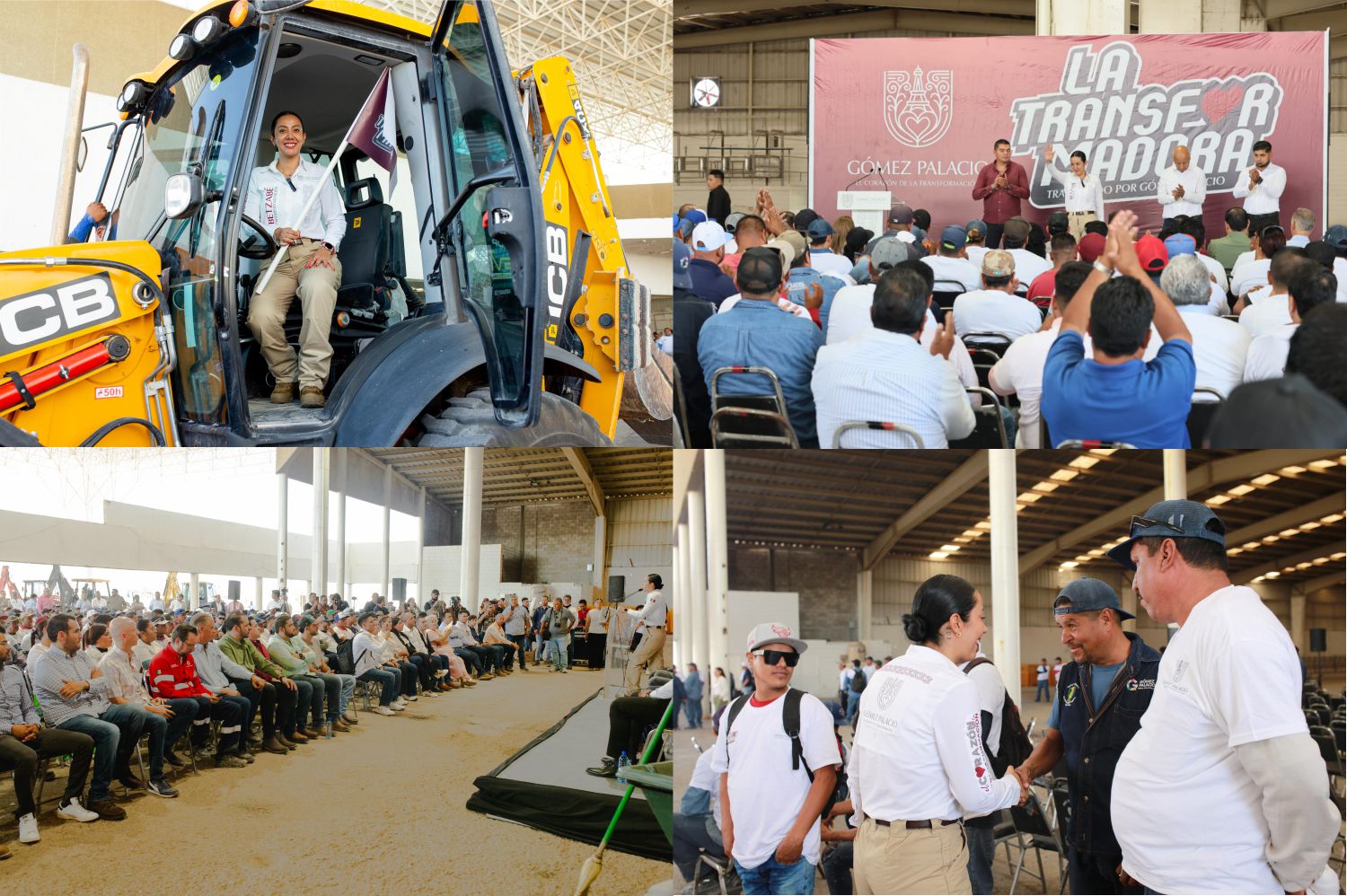 Betzabé Martínez agradeció especialmente a los empresarios y transportistas que se suman con generosidad a La Transformadora facilitando maquinaria pesada y camiones materialistas, que hoy sumaron alrededor de veinte unidades en las instalaciones de la Expo Feria Gómez Palacio.