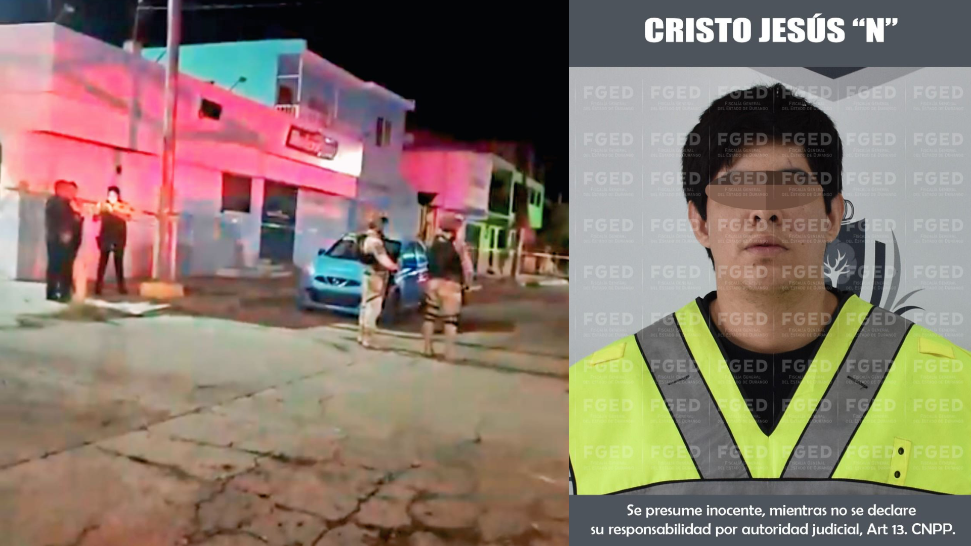 Durango, Dgo.- La Fiscalía General del Estado de Durango (FGED) informó sobre la detención en flagrancia de Cristo Jesús “N”, señalado como presunto responsable del homicidio calificado de Carlos Quiñones García, de 28 años, así como de lesiones calificadas en agravio de Brayan Alejandro Aguilar Muñoz, de la misma edad.