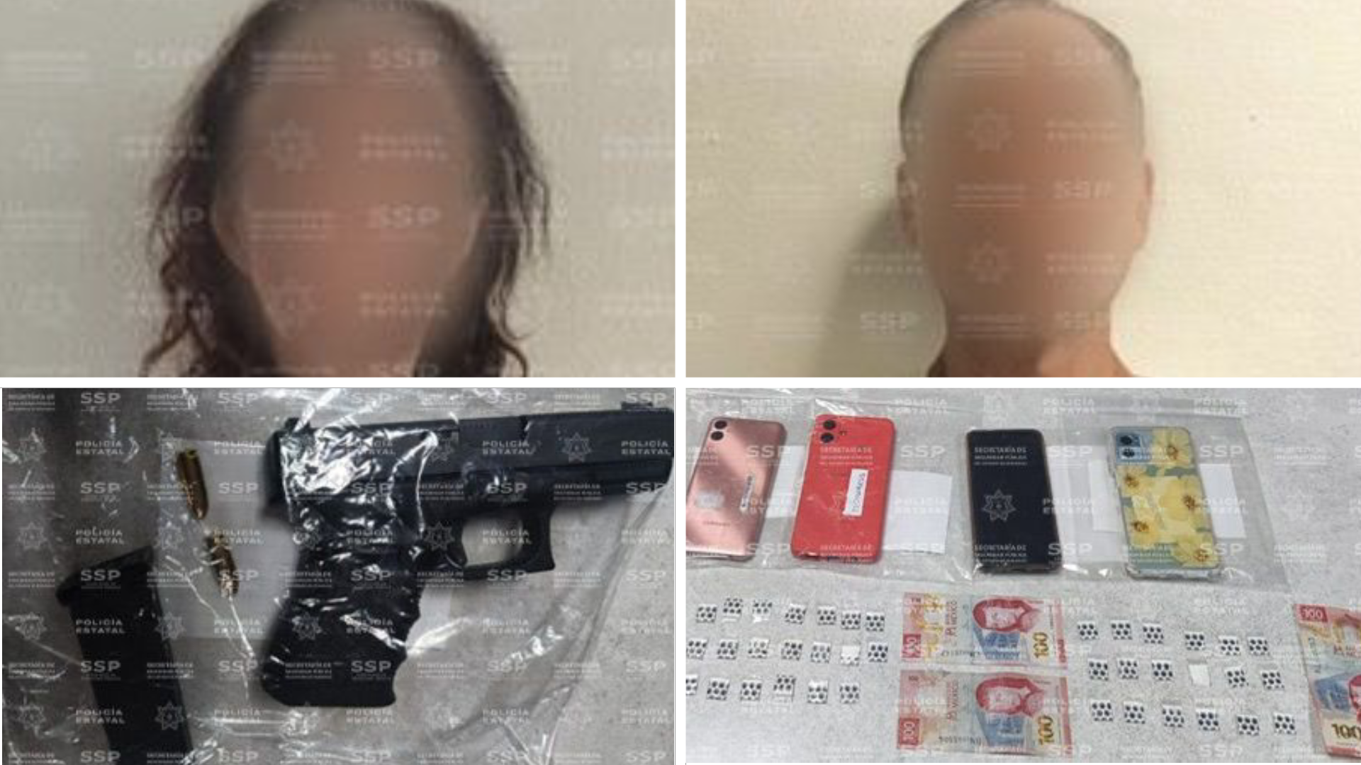 Tras el aseguramiento de la droga, el arma y el dinero en efectivo, ambos fueron detenidos y trasladados a las instalaciones de la Fiscalía General del Estado, donde quedaron a disposición del Ministerio Público para que se determine su situación jurídica conforme a la responsabilidad que les resulte.