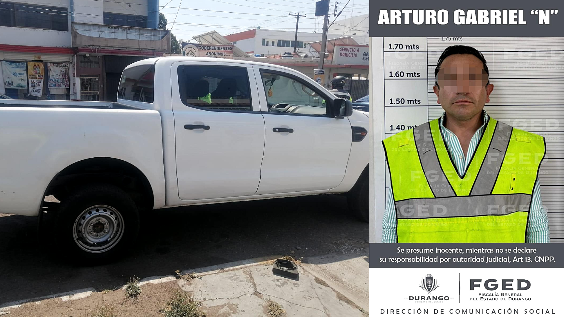 La detención ocurrió a las 10:23 horas sobre la avenida Cuauhtémoc, entre las calles Negrete y Aquiles Serdán, en el centro de la ciudad capital. El vehículo en cuestión es una camioneta Ford Ranger blanca, doble cabina, modelo reciente, que al ser verificada mediante el engomado arrojó estar registrada a nombre del Gobierno del Estado de Hidalgo.