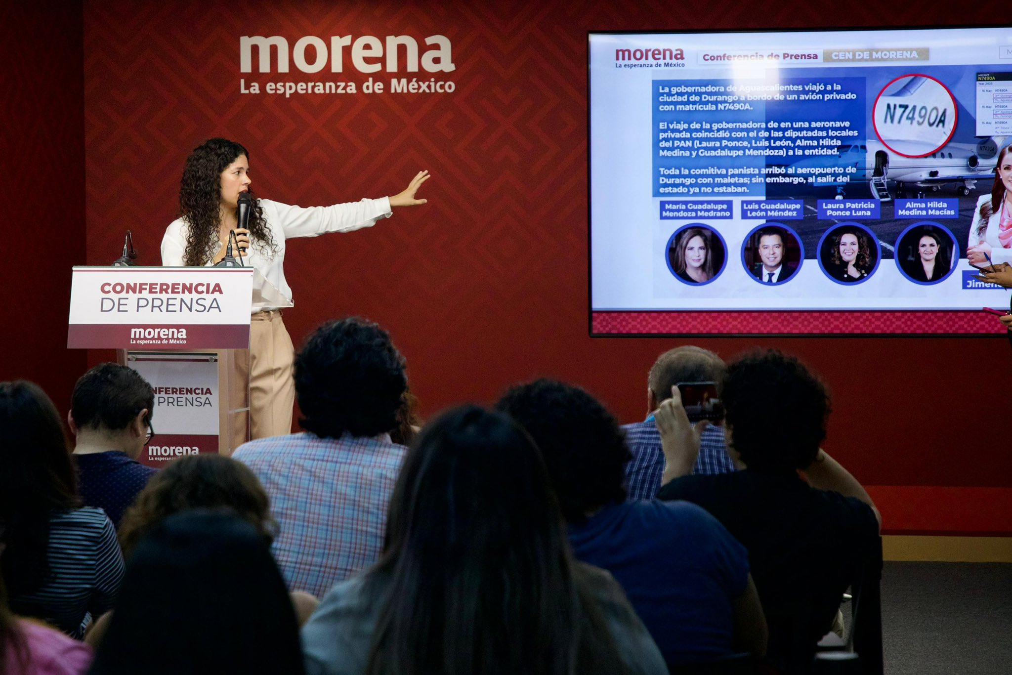 Finalmente, acusó al gobierno de Aguascalientes de injerencia en el proceso electoral de Durango. Afirmó que la gobernadora de esa entidad viajó a la capital duranguense en un avión privado junto a una comitiva de diputados del PAN. Según Morena, los visitantes llegaron con maletas y se retiraron tres horas después sin ellas. “Vamos a hacer la denuncia formal, pero también denunciamos públicamente esta intromisión ilegal”, concluyó.