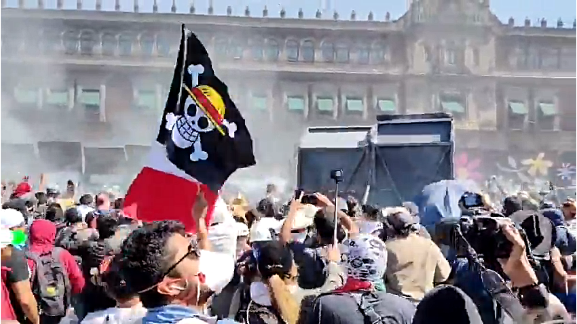 Ciudad de México, 15 de noviembre.— La convocatoria del movimiento denominad “Generación Z”, el que según el gobierno de México es impulsado por grupos identificados a posturas de derecha, derivó este sábado en un zafarrancho a las afueras de Palacio Nacional.