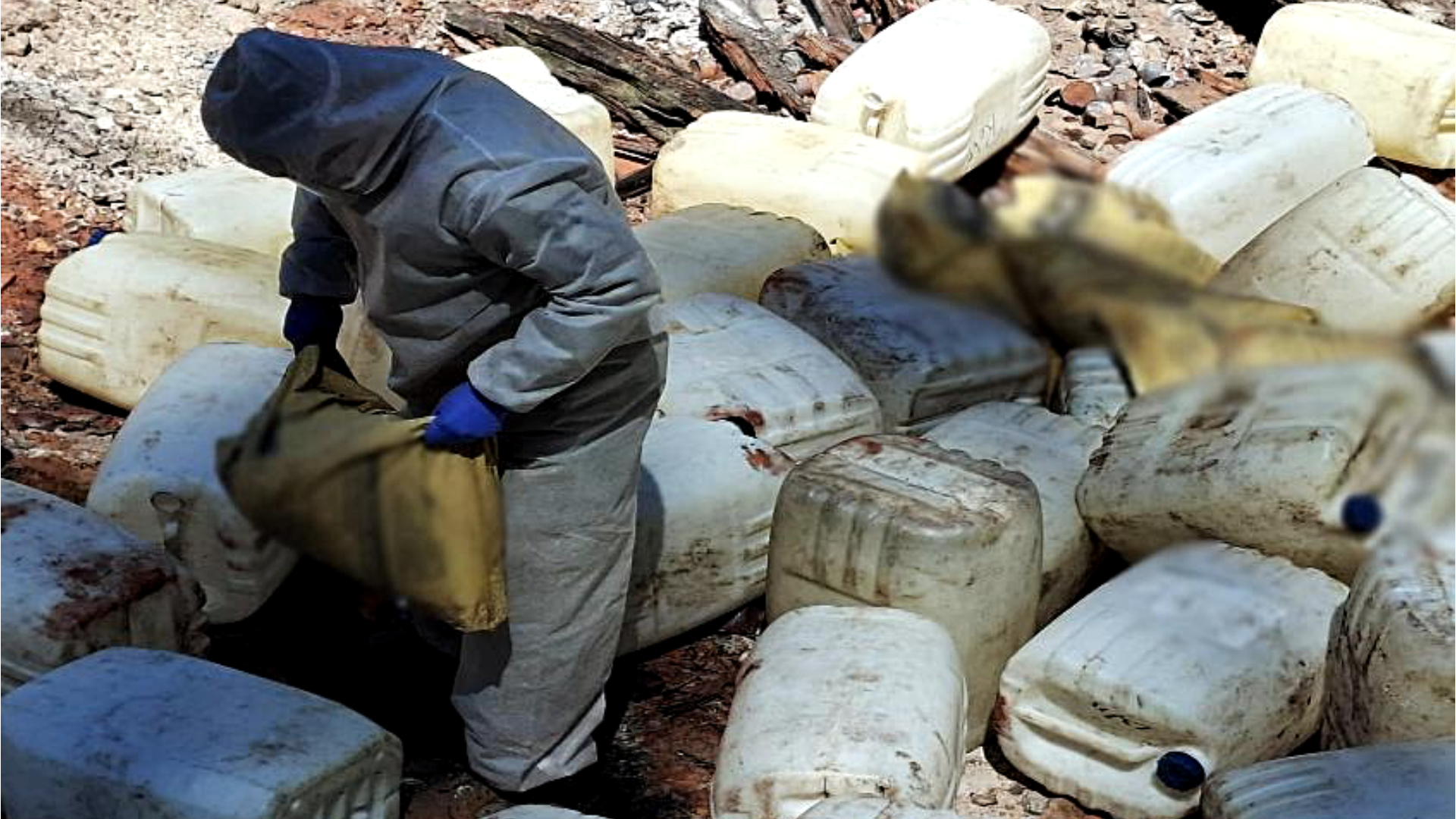 Durango, Dgo.- En una serie de operativos coordinados entre fuerzas federales, se logró desmantelar un laboratorio clandestino de metanfetaminas y asegurar más de 13 toneladas de precursores químicos, en acciones realizadas en la sierra y en la capital de Durango.