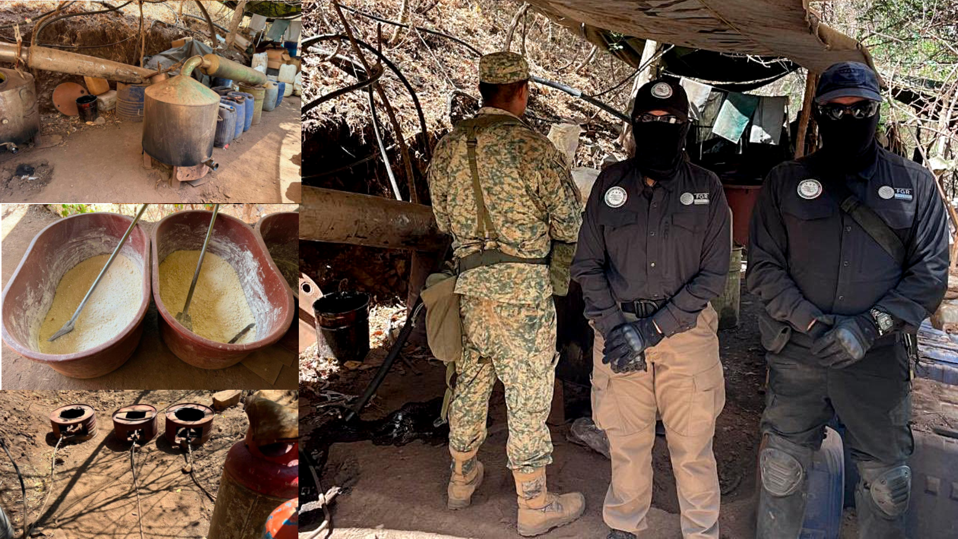 Tamazula, Dgo.- En un operativo coordinado por la Agencia de Investigación Criminal (AIC) de la Fiscalía General de la República (FGR), fuerzas federales desmantelaron un laboratorio de drogas sintéticas y una pista de aterrizaje clandestina en el municipio de Tamazula, Durango.
