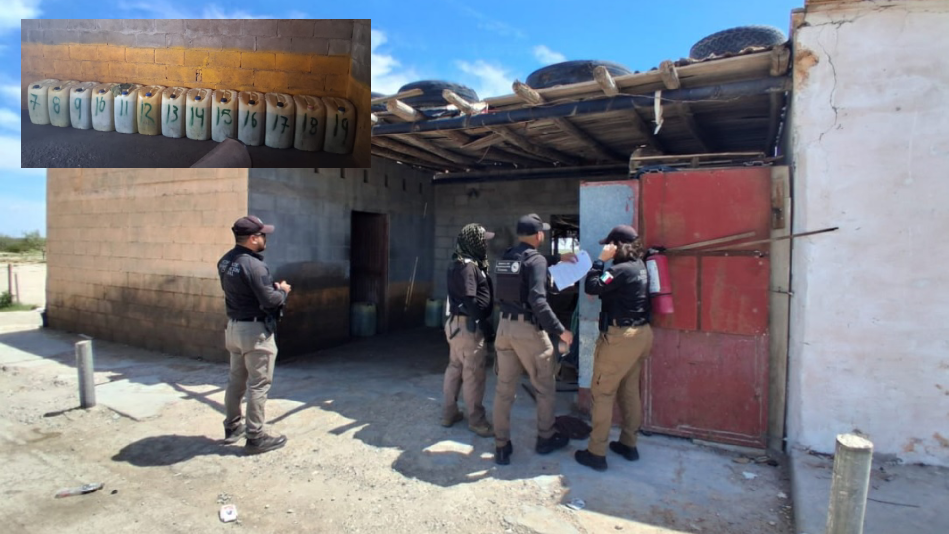 Comarca Lagunera / Mapimí.- La Fiscalía General de la República (FGR), a través de su Fiscalía Especializada de Control Regional (FECOR), realizó un cateo en el municipio de Mapimí, Durango, donde aseguró hidrocarburo presuntamente almacenado de forma ilegal, así como un inmueble y un vehículo.