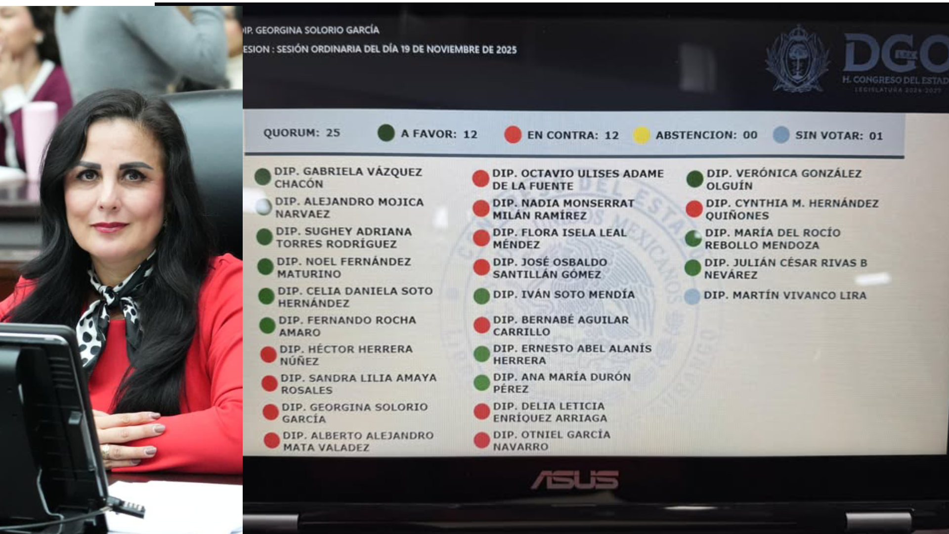 La votación terminó 12 a 12, por lo que la presidenta aplicó su voto de calidad y negó la intervención de Solorio García. La diputada señaló que la ausencia del legislador de Movimiento Ciudadano, quien no estuvo presente en la sesión, fue determinante en el resultado, recordando que el Congreso está integrado por 25 representantes: 12 de la coalición Morena–PVEM, 12 del bloque PRI–PAN y uno de MC.