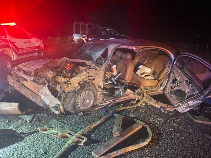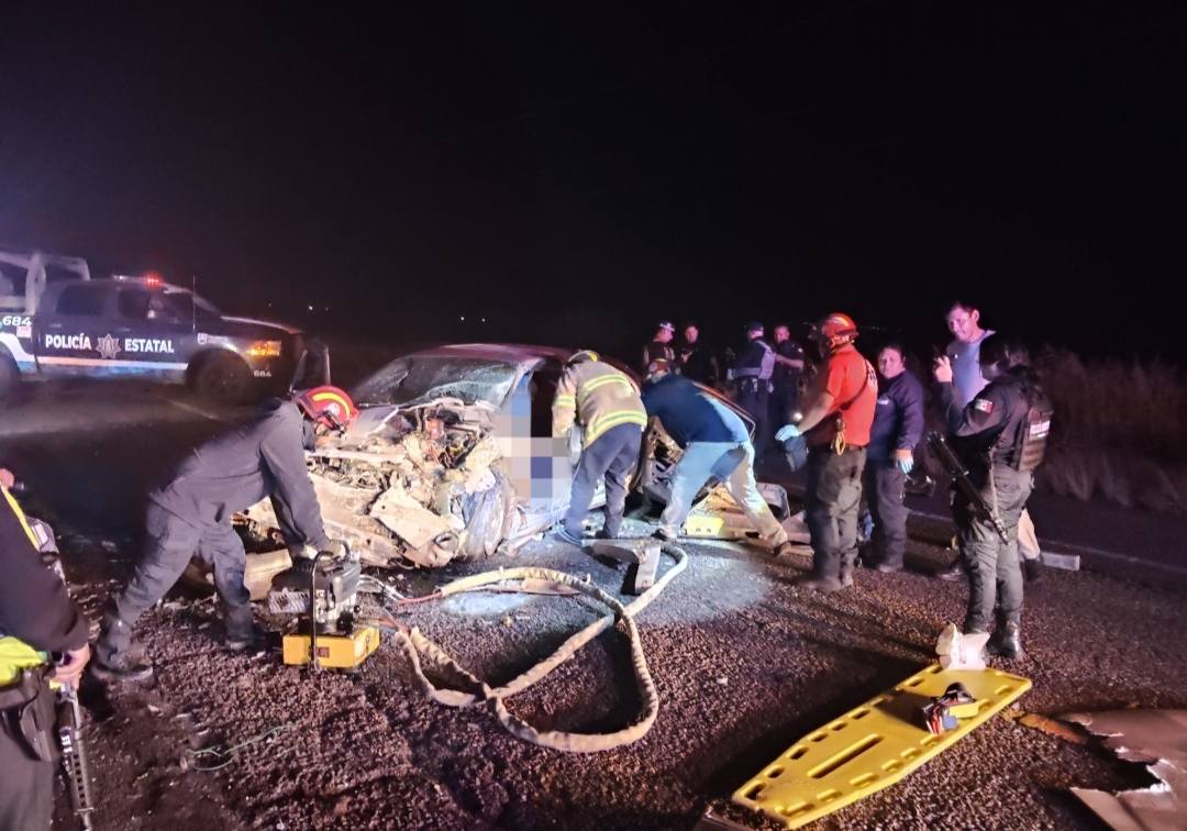 El percance ocurrió alrededor de las 19:45 horas, cuando el automóvil Lincoln Continental, color arena y con placas de Durango, se impactó violentamente contra la parte trasera del remolque de un tractocamión que circulaba en el mismo sentido.