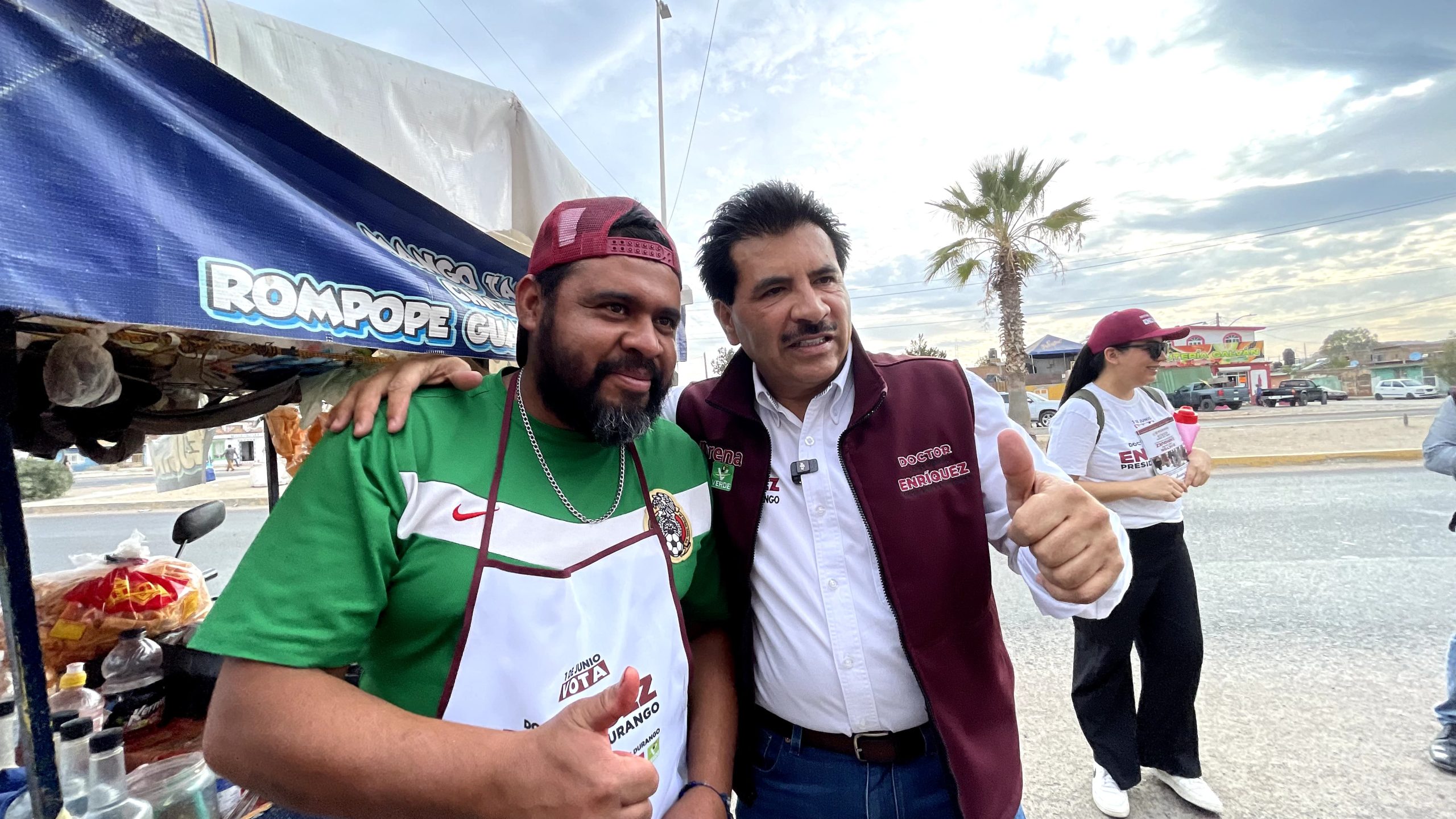Durango, Dgo.- La campaña del cambio que encabeza el doctor José Ramón Enríquez continúa siendo todo un éxito en las calles de nuestra capital, encontrándose con los ciudadanos y dialogando sobre cómo mejorar Durango.