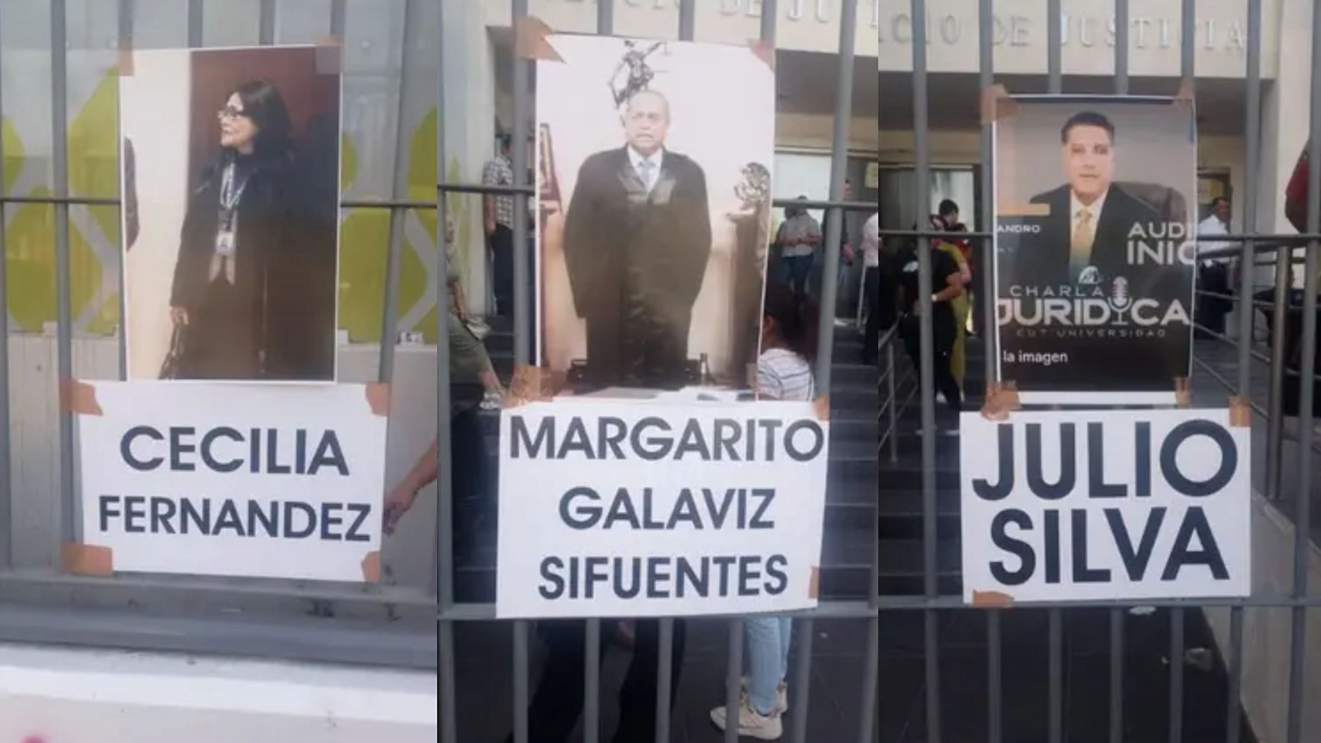 En tercer día de protestas, madre de la víctima coloca fotografías con nombres de los magistrados; exige justicia y denuncia a quienes liberaron al presunto agresor de su hija.