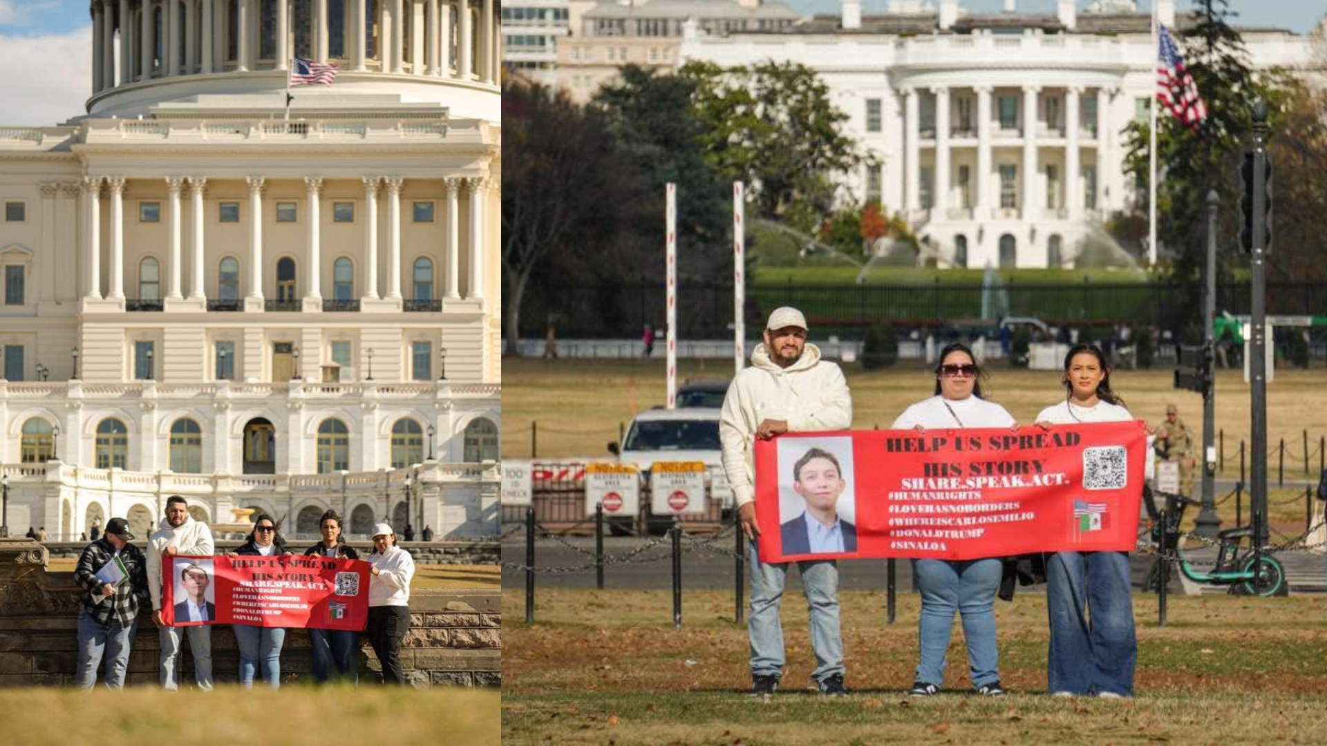 Brenda Valenzuela Gil, madre del joven, viajó a la capital estadounidense para visibilizar el caso en el Capitolio, acompañada de familiares y amigos que desplegaron pancartas y panfletos con la imagen de Carlos Emilio. El objetivo, señalaron, es presionar a las autoridades mexicanas y estadounidenses para que se aceleren las acciones de búsqueda.