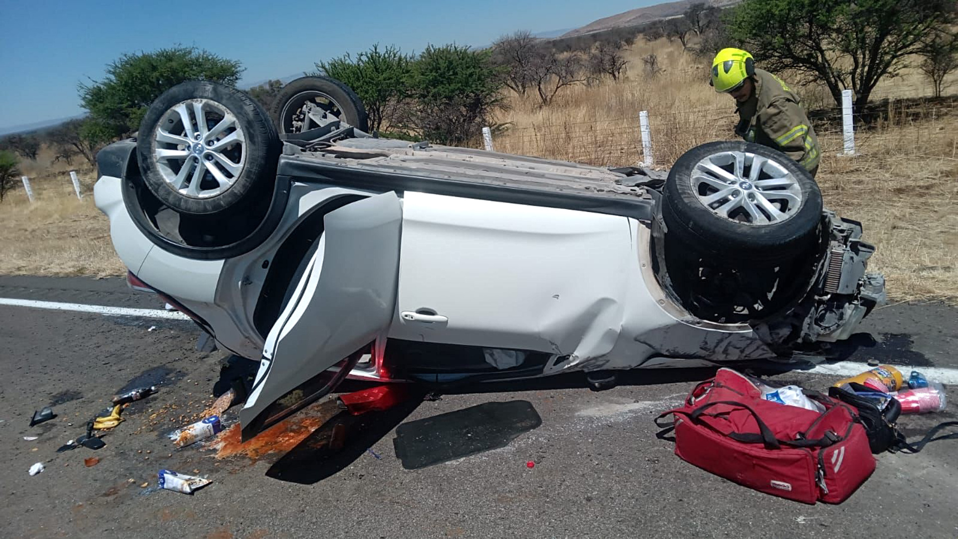 Durango, Dgo.- La mañana de este domingo, alrededor de las 11:00 horas, elementos del Cuerpo de Bomberos de Durango atendieron un accidente vehicular registrado en el kilómetro 35 de la autopista Durango-Gómez Palacio.