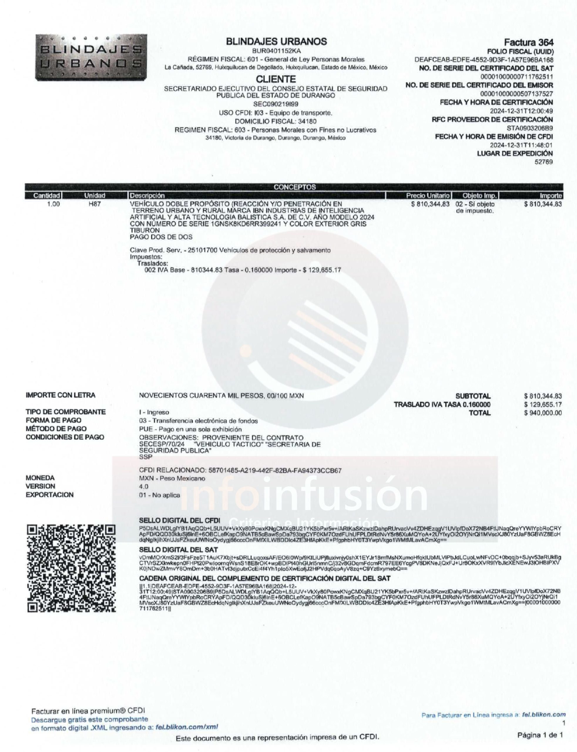 La compra fue registrada a nombre del Secretariado Ejecutivo del Consejo Estatal de Seguridad Pública de Durango, y se efectuó en dos pagos: uno por 5.84 millones de pesos y otro por 940 mil pesos, según la documentación oficial. Con esta adquisición, el gobierno estatal busca fortalecer la estrategia de seguridad pública con herramientas que permitan actuar con mayor eficacia en escenarios de alto riesgo.