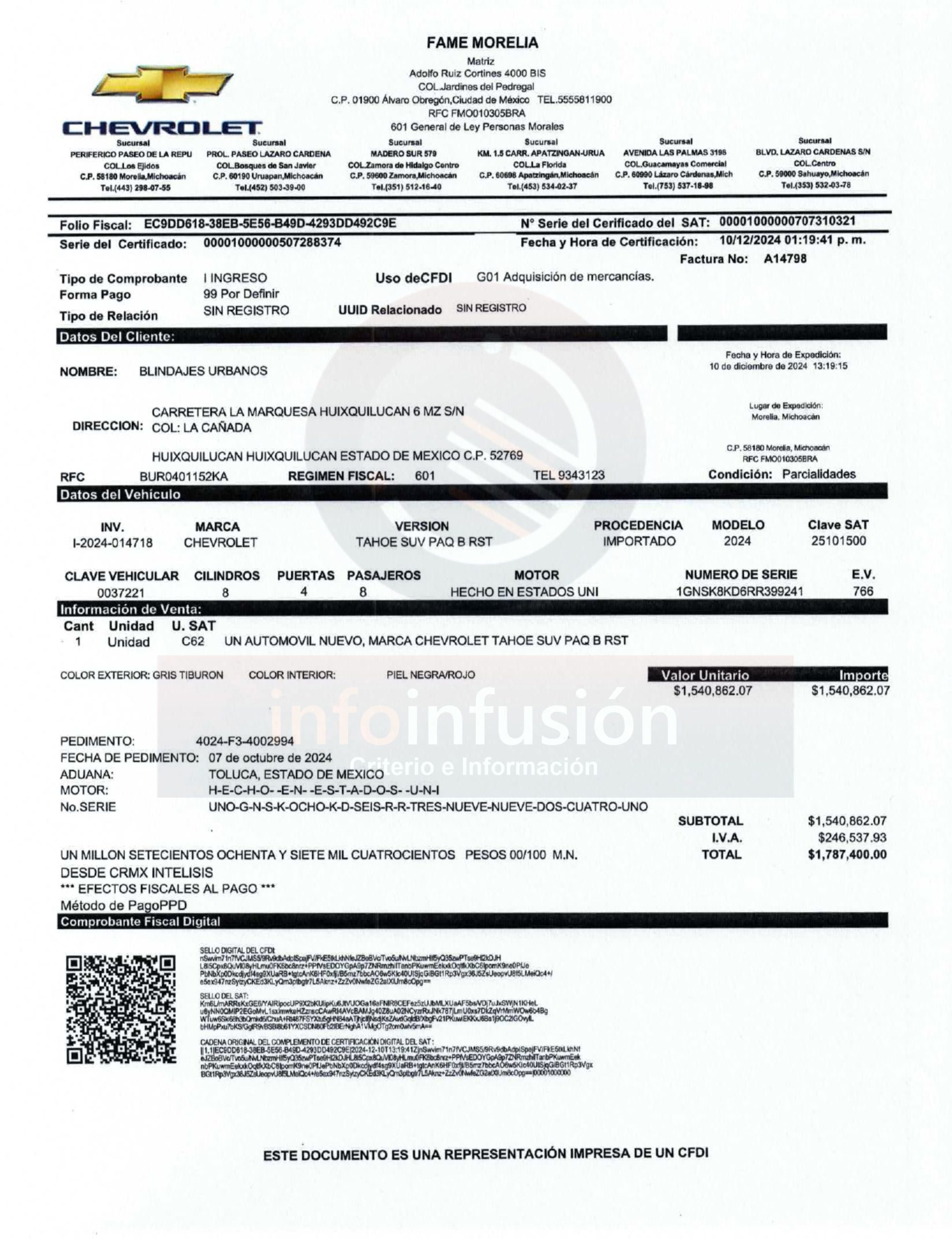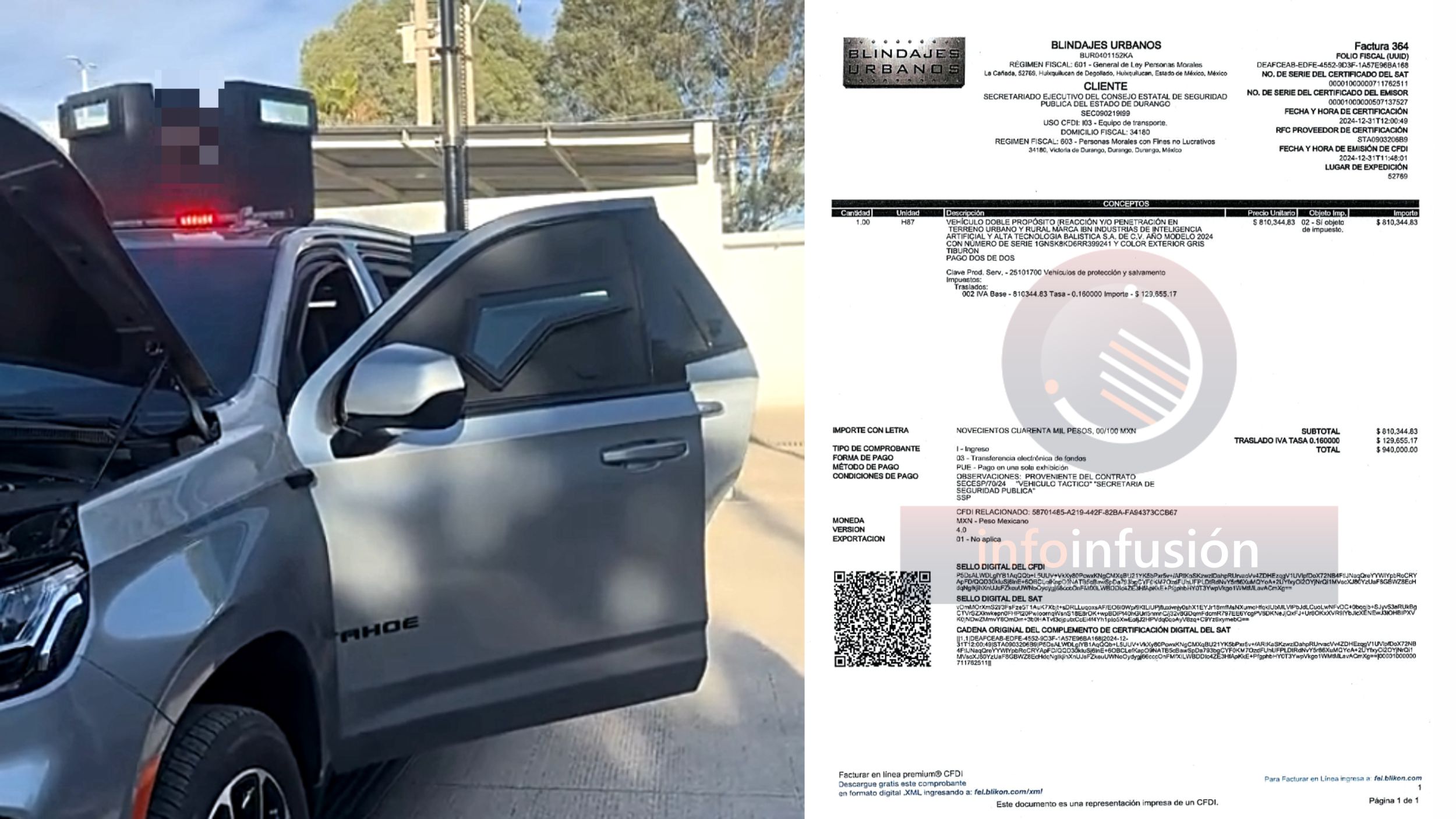 El vehículo, modelo 2024, fue blindado por la empresa Blindajes Urbanos, mientras que la unidad base fue adquirida por el gobierno estatal en la agencia Chevrolet Fame Morelia, con un precio de 1 millón 787 mil pesos. El resto de la inversión corresponde al blindaje balístico, neumáticos reforzados, sistema de suspensión adaptado y dispositivos tecnológicos avanzados.