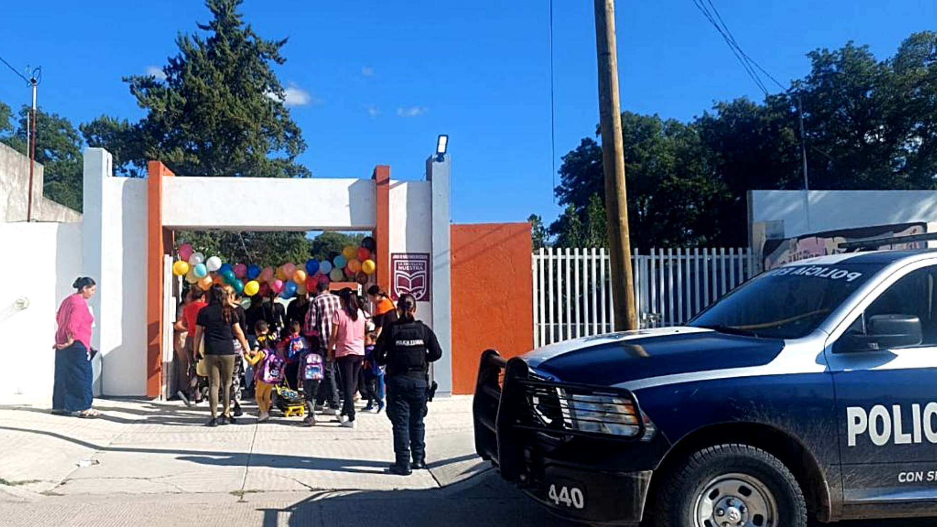 Durango, Dgo.- Con el arranque del nuevo ciclo escolar, la Secretaría de Seguridad Pública del Estado (SSP) reactivó el operativo de protección en escuelas de los 39 municipios de la entidad, con el objetivo de garantizar la seguridad de alumnos, docentes y padres de familia en los horarios de entrada y salida.