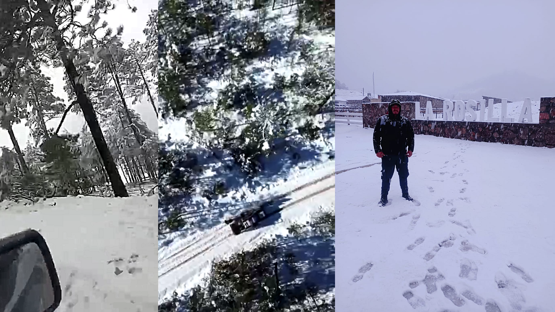 La Rosilla, reconocida a nivel nacional como el “congelador de México” por registrar temperaturas extremas, presenta condiciones de frío severo, al igual que otras comunidades del mismo municipio, como Ciénega de la Vaca, donde también se reportó nevada continua desde temprana hora.