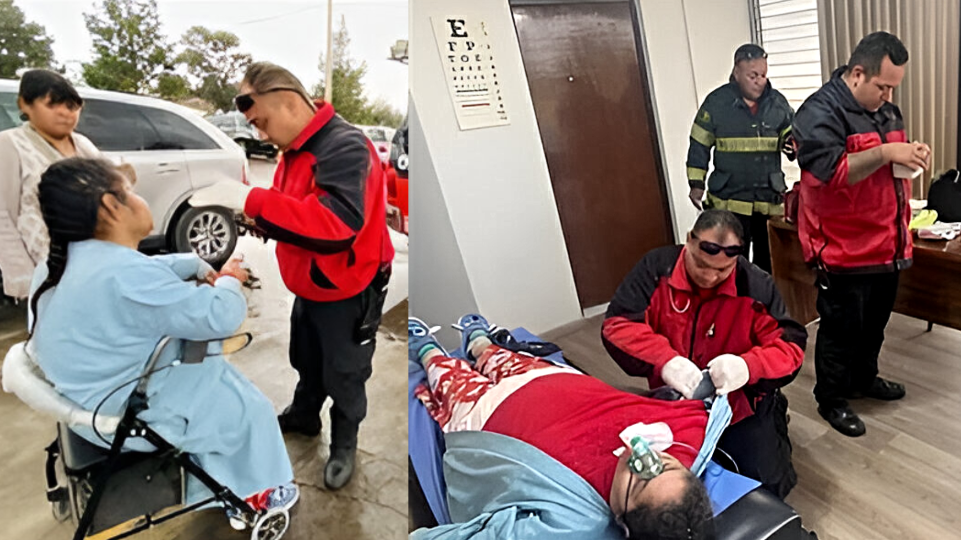 El incidente se registró en la calle Cobalto s/n, donde la paciente, quien cuenta con antecedentes de infartos previos, comenzó a presentar un cuadro crítico caracterizado por dolor torácico, hipotensión y una disminución severa en los niveles de oxigenación.