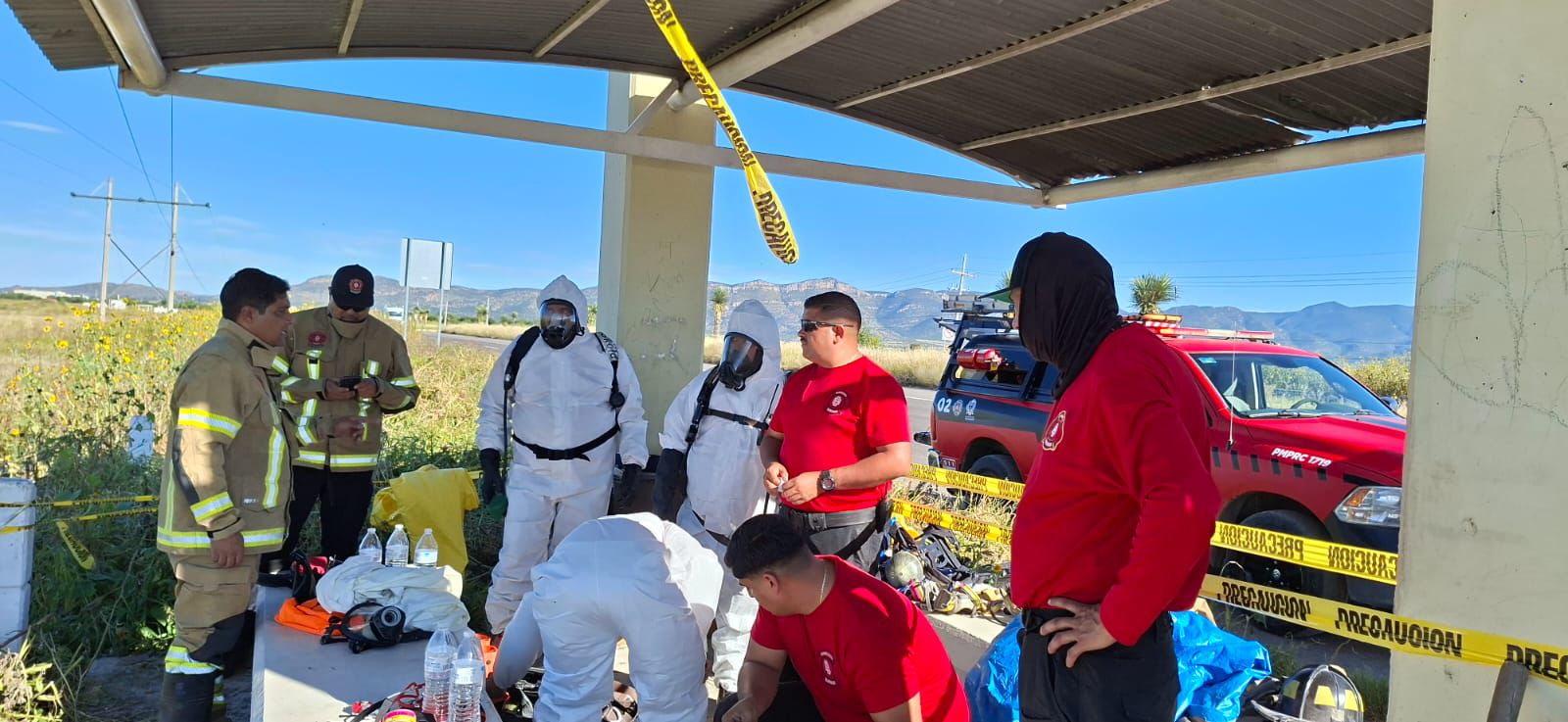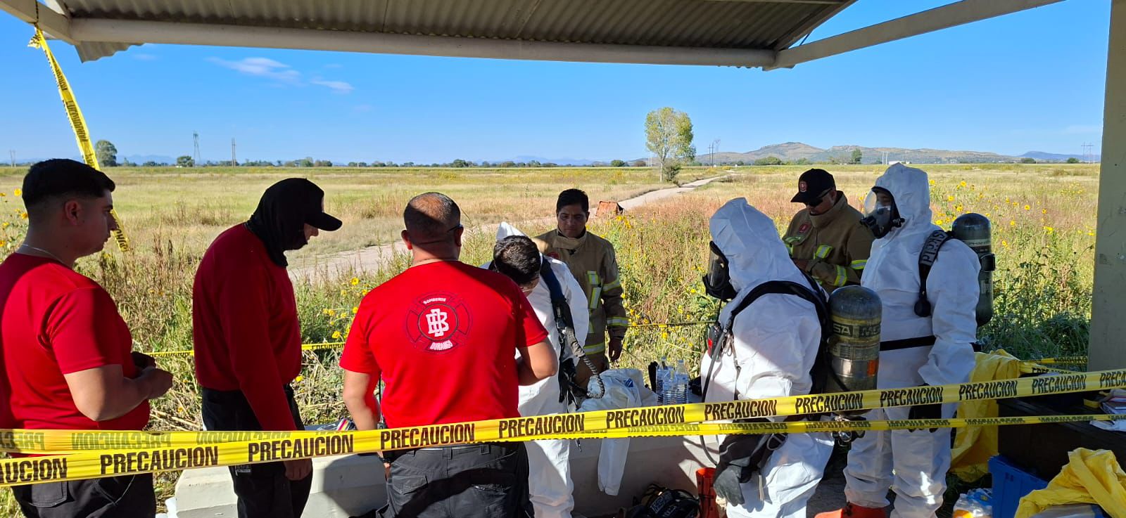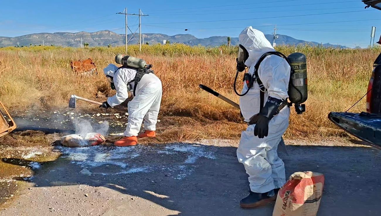 Escuadrón Haz-Mat de Protección Civil de Durango neutralizó dos contenedores abandonados con sustancia corrosiva en Villa Montemorelos.
