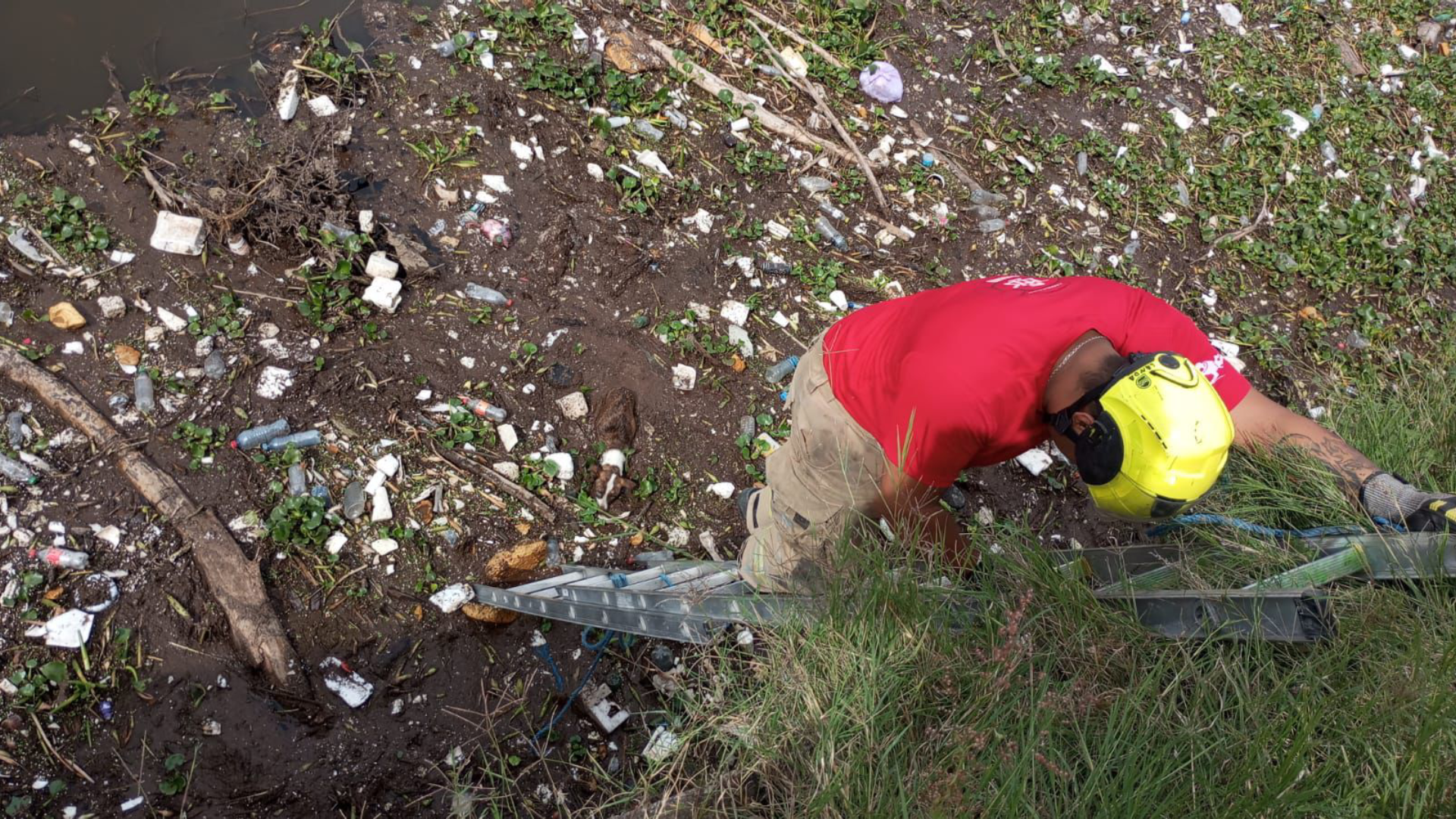 El animal fue entregado sano y salvo a su familia tras permanecer atorado entre maleza, basura y agua; autoridades llaman a cuidar el entorno.