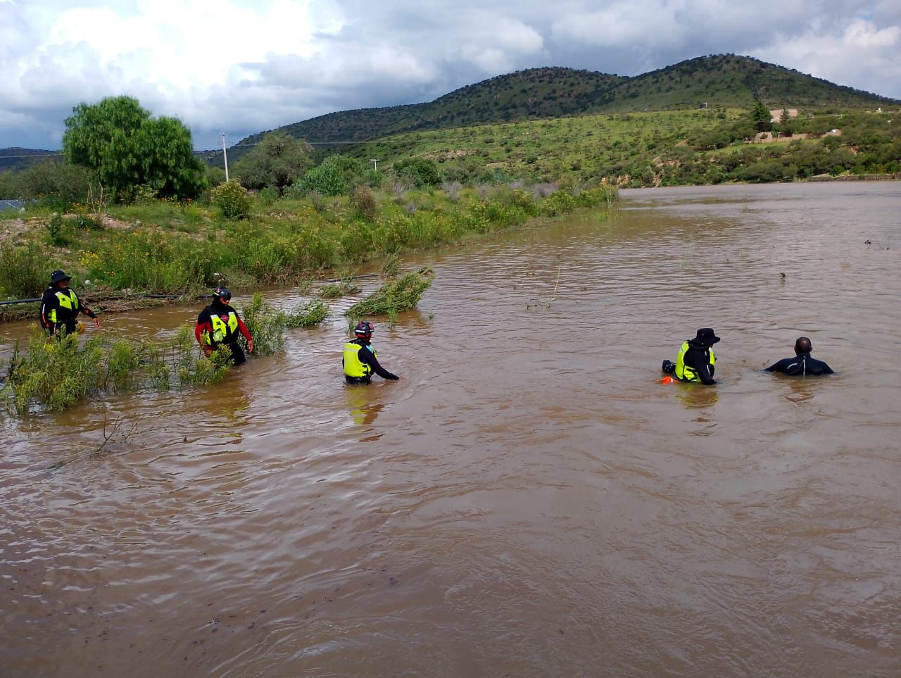 En el operativo participan buzos de Fresnillo, Zacatecas, que realizan maniobras acuáticas, y rescatistas de Sombrerete, quienes efectúan recorridos en lancha. Además, se espera el arribo de cuatro drones de la Coordinación Estatal de Protección Civil para reforzar la búsqueda.