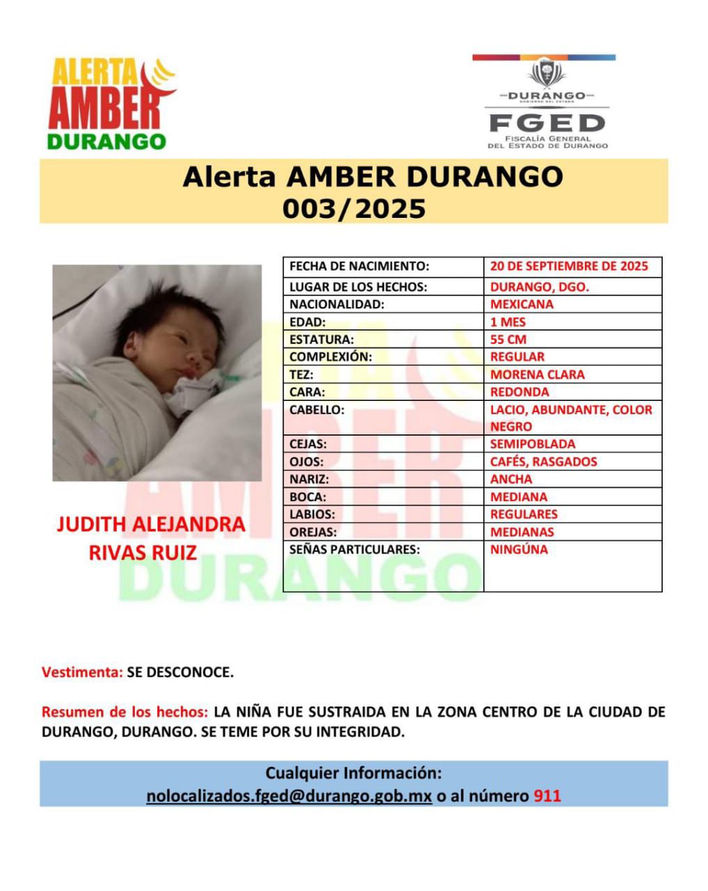 La menor, identificada como Judith Alejandra Rivas Ruiz, de apenas un mes de nacida, fue sustraída presuntamente del área de Neonatología, en la zona centro de la capital. De acuerdo con los primeros reportes, personal médico detectó su ausencia durante una revisión de rutina, momento en el que se activaron las alertas internas.