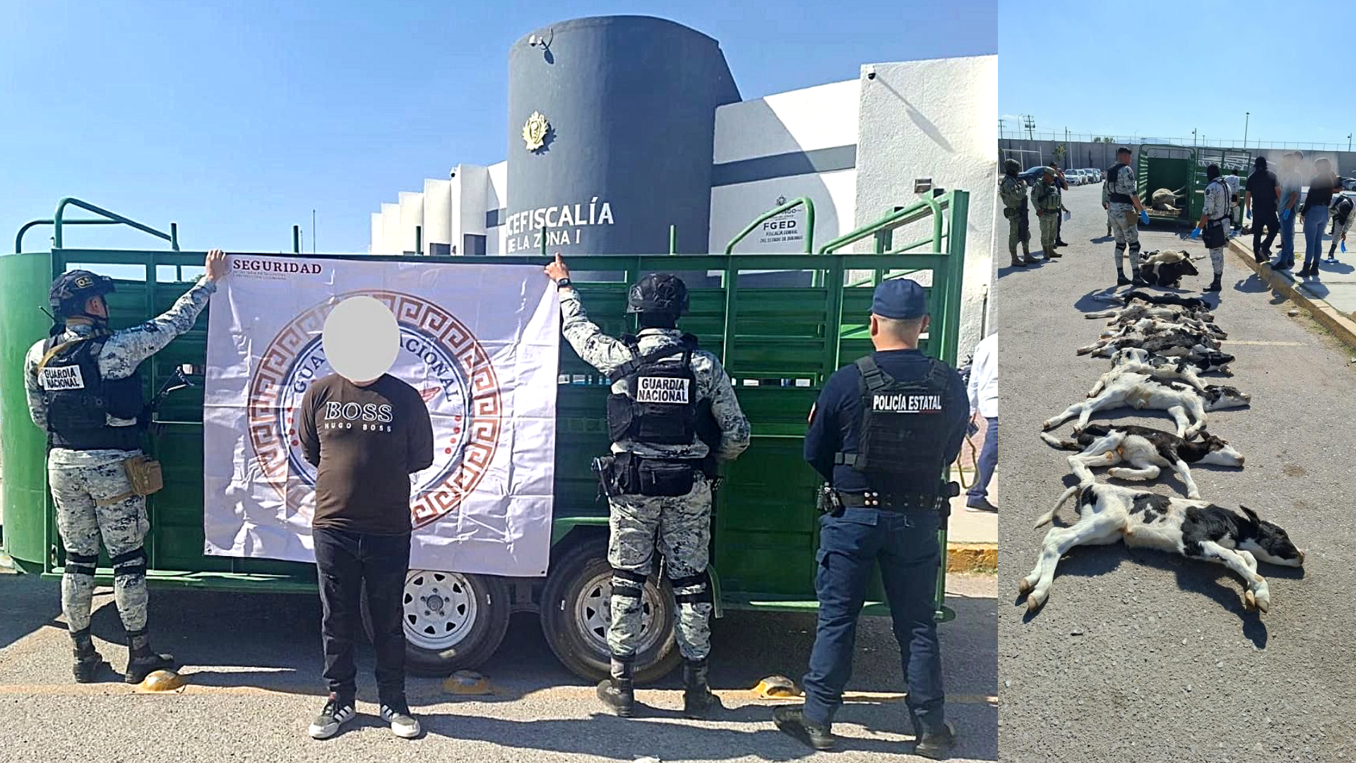 El hombre trasladaba becerros y una vaca -la mayoría muertos- en una traila con placas de Durango.