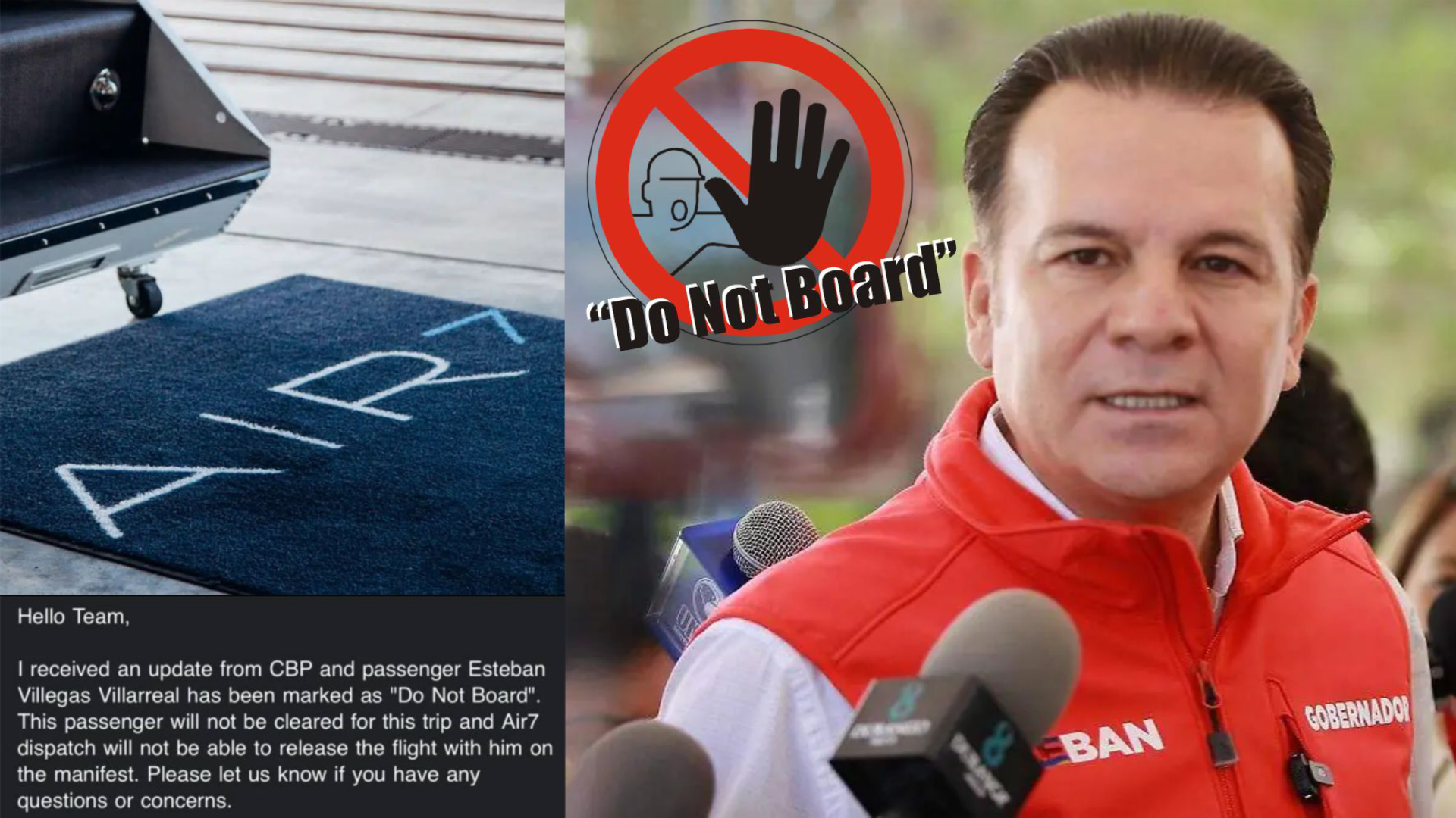 Durango, Dgo.- La gira que el gobernador de Durango tenía programada en Estados Unidos para promover proyectos de inversión en centros de datos, infraestructura de fibra óptica e inteligencia artificial fue suspendida luego de que la empresa de vuelos privados contratada para el traslado recibiera una notificación del Departamento de Seguridad Nacional (DHS, por sus siglas en inglés) que lo colocaba bajo la categoría de “Do Not Board”.